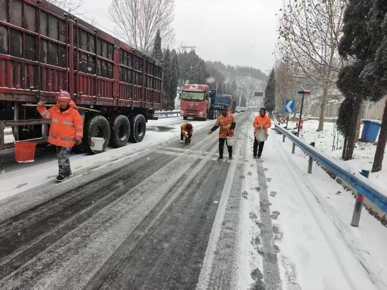 截至目前,已累计投入巡查人员200余人次,巡查路面260公里、桥梁35座、隧道1座,调配机械25台次,撒布环保型融雪剂13吨。