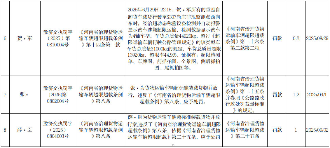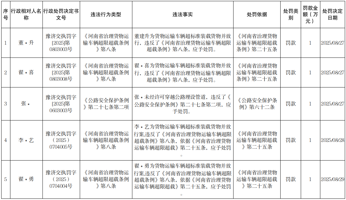 2025年8月27日至9月2日行政处罚结果