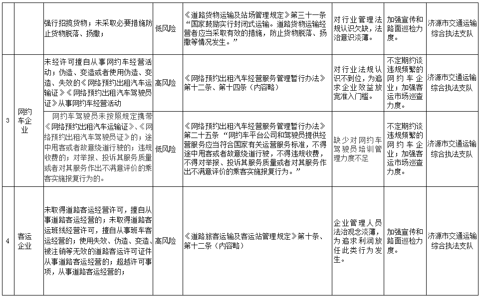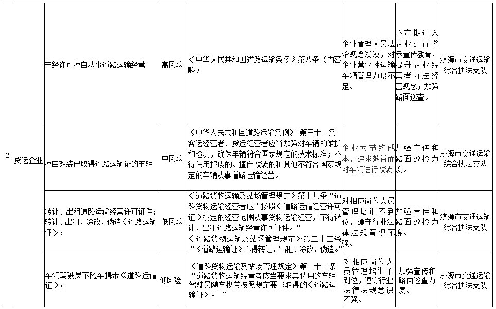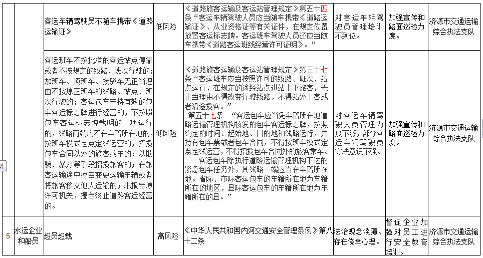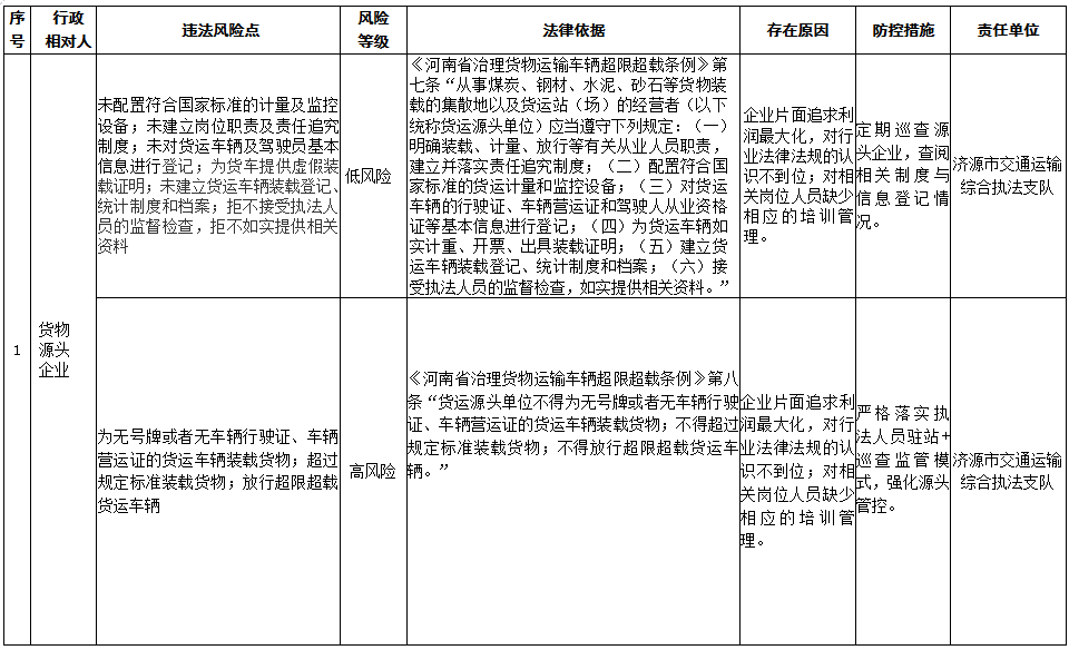 济源示范区交通运输局行政相对人违法风险点及防控措施清单