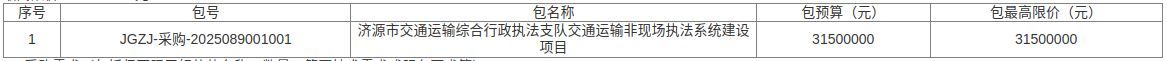 济源市交通运输综合行政执法支队交通运输非现场执法系统建设项目招标项目的潜在投标人应在全国公共资源交易平台(河南省.济源市)获取招标文件,并于2025年05月16日08时30分(北京时间)前递交投标文件。