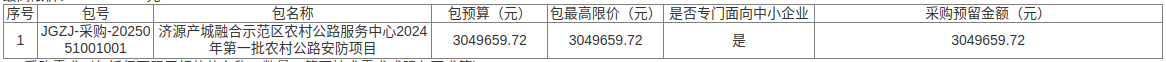 5.1标的名称:济源产城融合示范区农村公路服务中心2024年第一批农村公路安防项目;