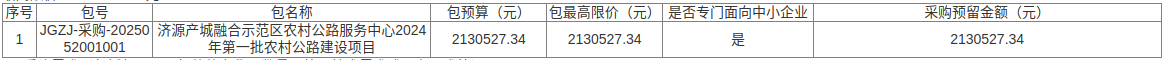 5.1标的名称:济源产城融合示范区农村公路服务中心2024年第一批农村公路建设项目;