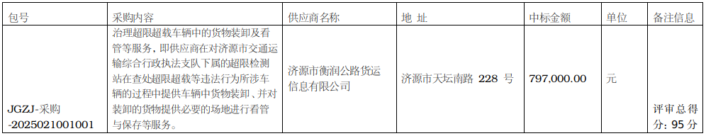本次中标公告在《河南省政府采购网》、全国公共资源交易平台(河南省.济源市)网上发布,成交公告期限为1个工作日 。