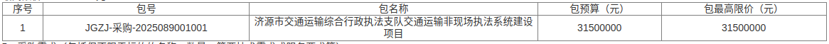​ 济源市交通运输综合行政执法支队交通运输非现场执法系统建设项目招标公告