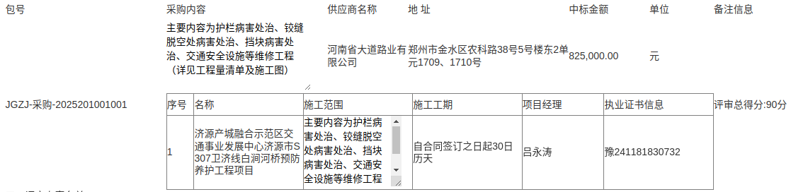 本次中标公告在《河南省政府采购网》、《中国招标投标公共服务平台》、《全国公共资源交易平台(河南省济源市)》、《济源产城融合示范区交通运输局官网》上发布,成交公告期限为1个工作日 。