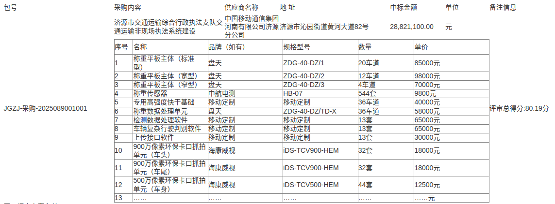 1.采购项目用途:本项目通过采购车道动态称、监控及配套信息化系统等内容新建8处非现场执法点,改造原有2处非现场执法点,整体提升济源市交通运输综合行政执法支队执法水平,提高联防联控能力。