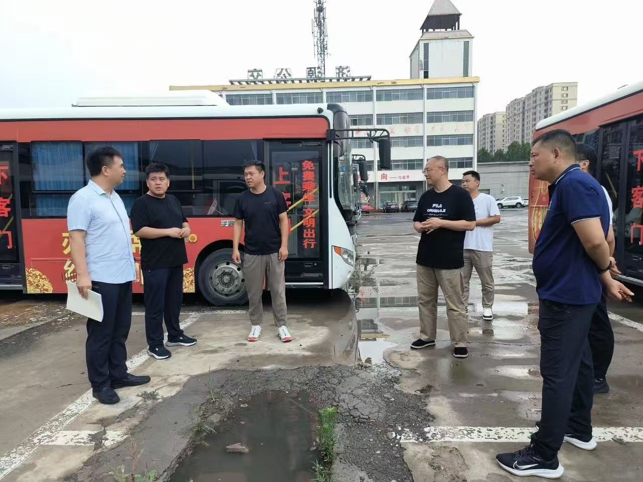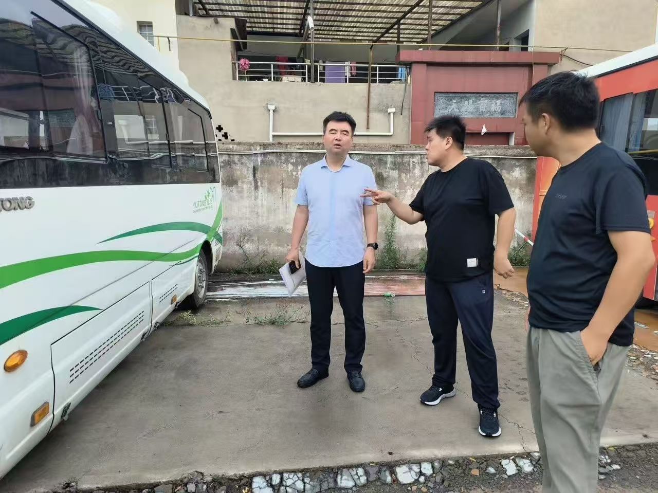 调研组一行先后来到济源环球客运有限公司、交运公共交通有限公司、济水源旅游汽车有限公司。在防汛安全检查环节,重点查看了客运场站排水设施、易涝点整治、防汛物资储备情况,详细询问了极端天气下车辆停运、旅客疏散的应急预案及演练情况,要求企业务必时刻绷紧防汛之弦,做到“早准备、早排查、早处置”,做好应急运力储备,确保一旦发生险情能够迅速响应、科学处置。