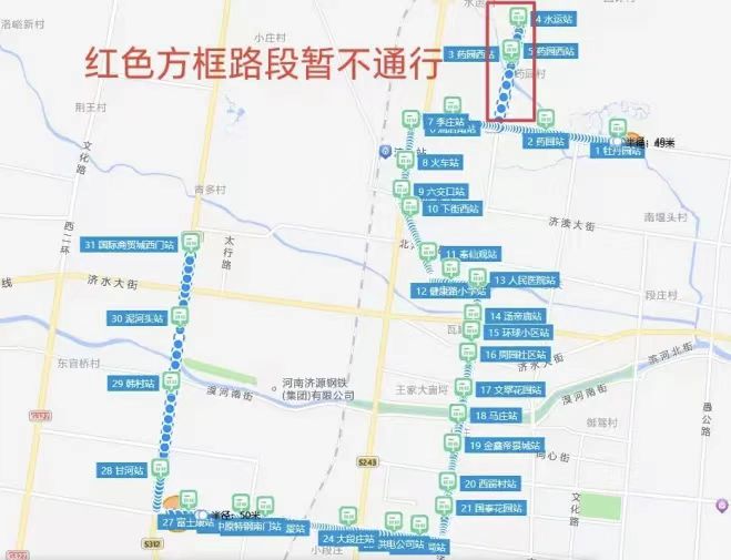 临时改线方案:牡丹园发车→北环路向西→天坛路向南按原线路运营。暂时取消药园西站、水运站