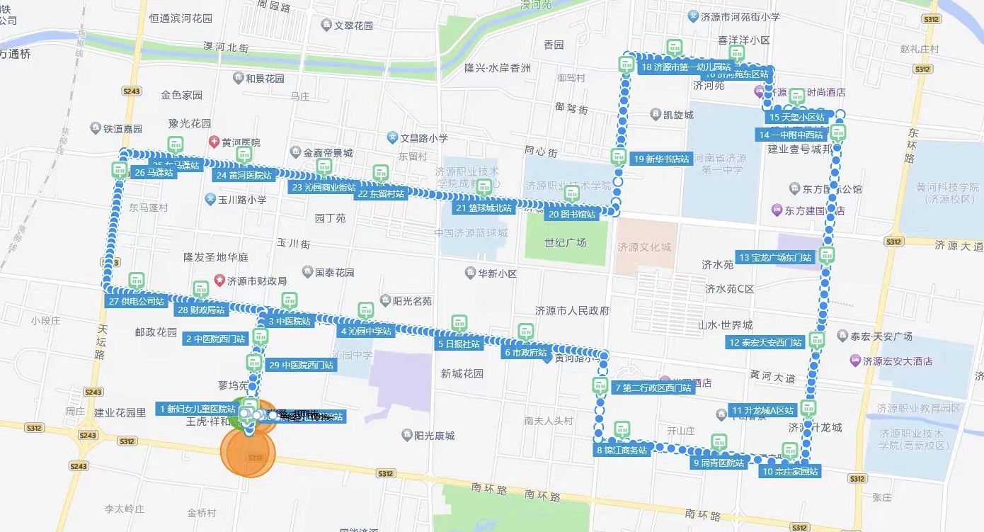 途经新站点:升龙城A区站、泰宏天安西门站、宝龙广场东门站、一中附中西站、济源府西门站、天玺南门站、济和苑东区站、济和苑西区站、济源市第一幼儿园站、新华书店站