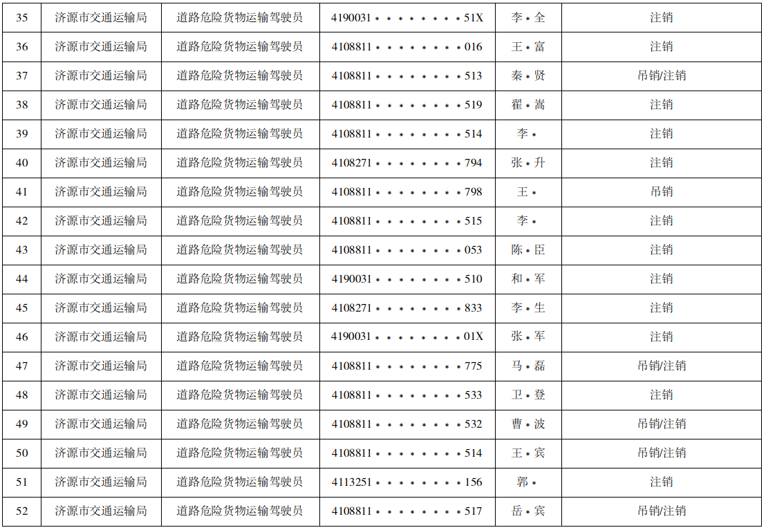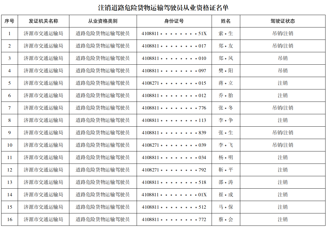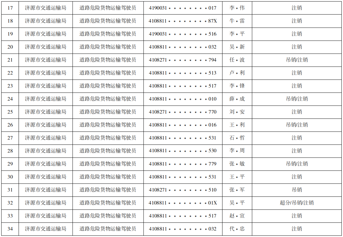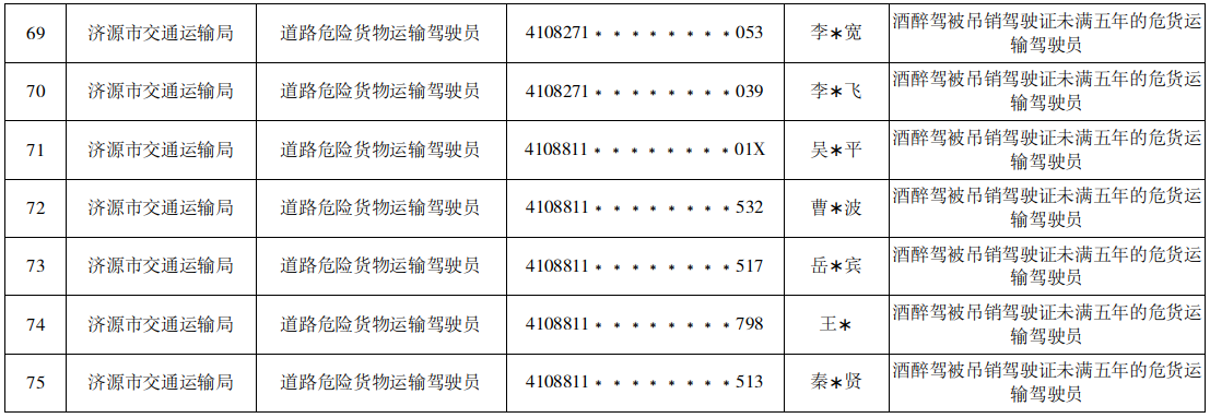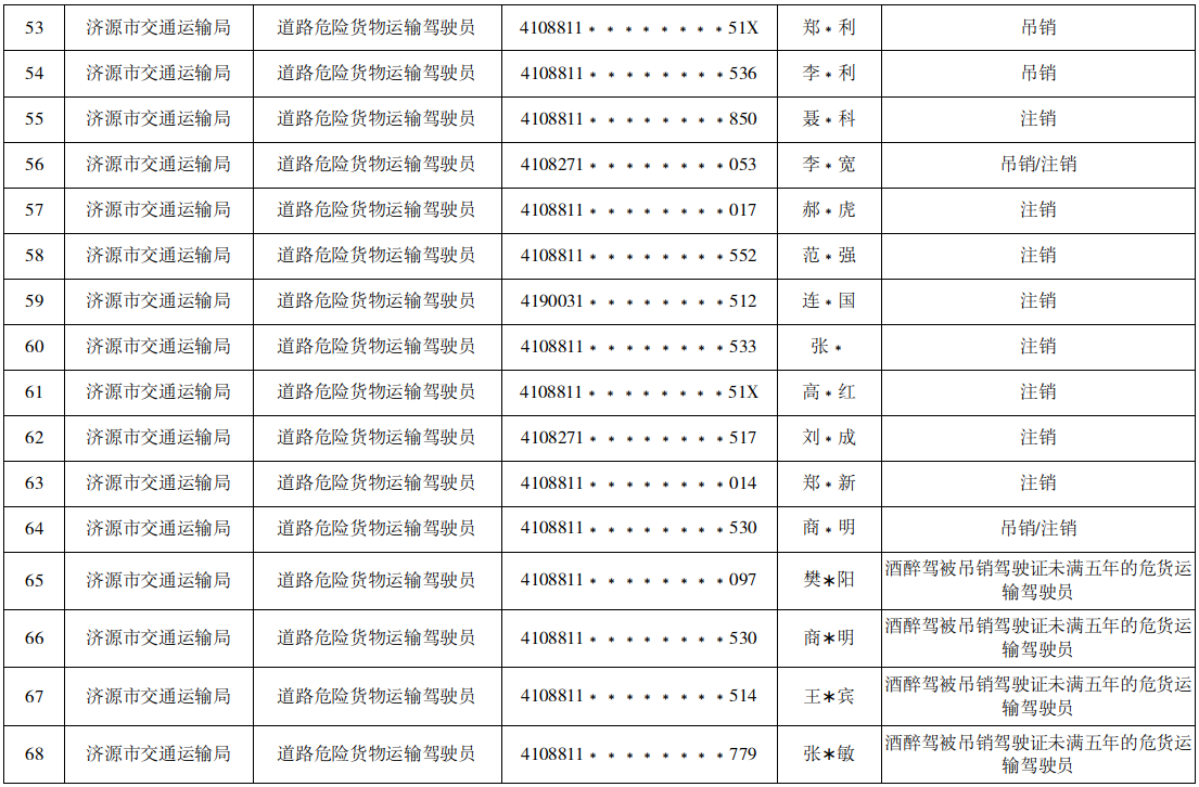 根据河南省公安厅转河南省交通运输厅《公安提示函》(2025年9月22日),我市75名道路危险货物运输驾驶员的驾驶证已被公安机关注销或吊销(明细见附件)。
